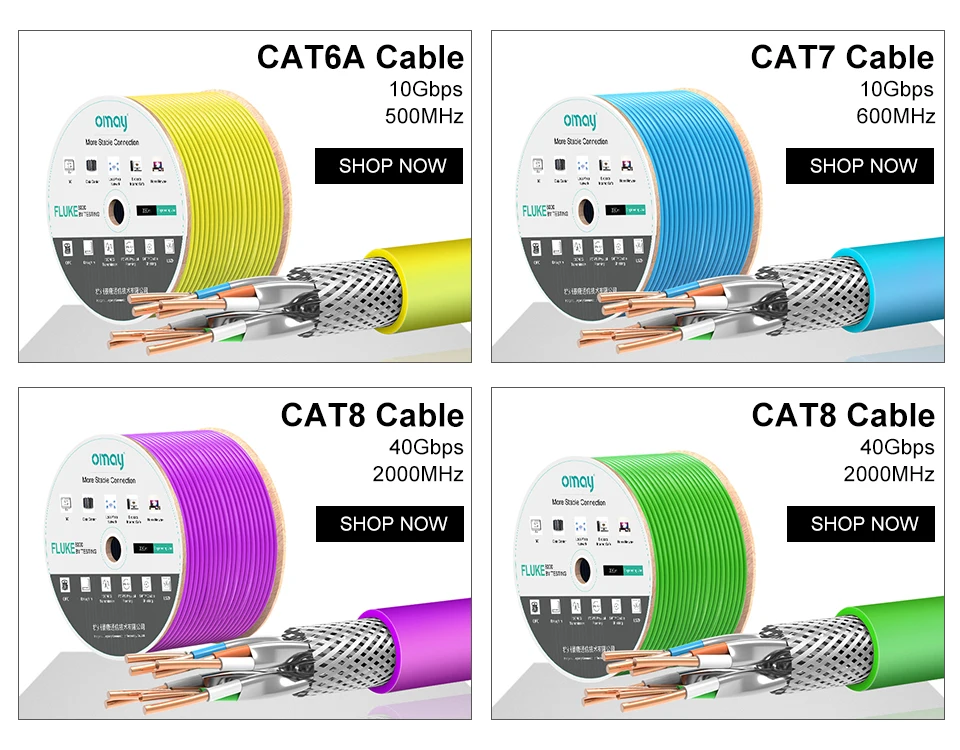 Comprar Cable Ethernet de red CAT7 S/FTP, 23AWG, 4PR, OMAY, LSZH, 10Gbps, 600MHz, doble blindaje, cobre libre de oxígeno, compatible con FTTH 1/2/5/8/10m