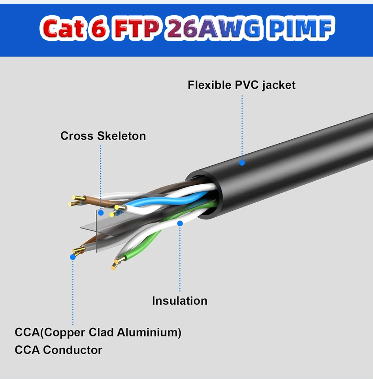 Este cable Ethernet redondo Cat 6 está diseñado para un rendimiento superior, con 26 núcleos de alambre de cobre.Proporciona conectividad universal como cable Ethernet para red LAN.