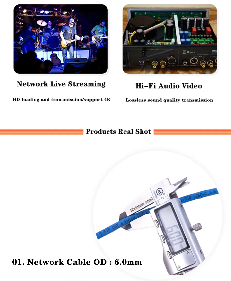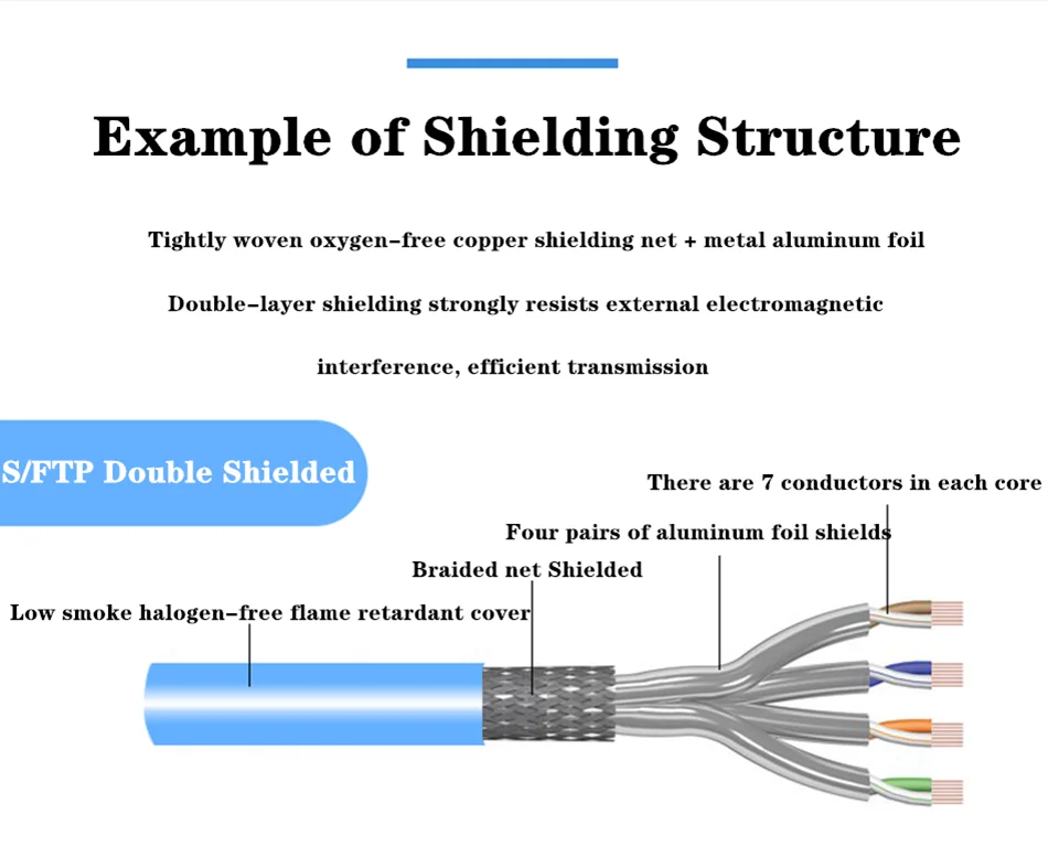 1. Nombre:Cable de red doble blindado Cat6, puente de red SFTP multihilo