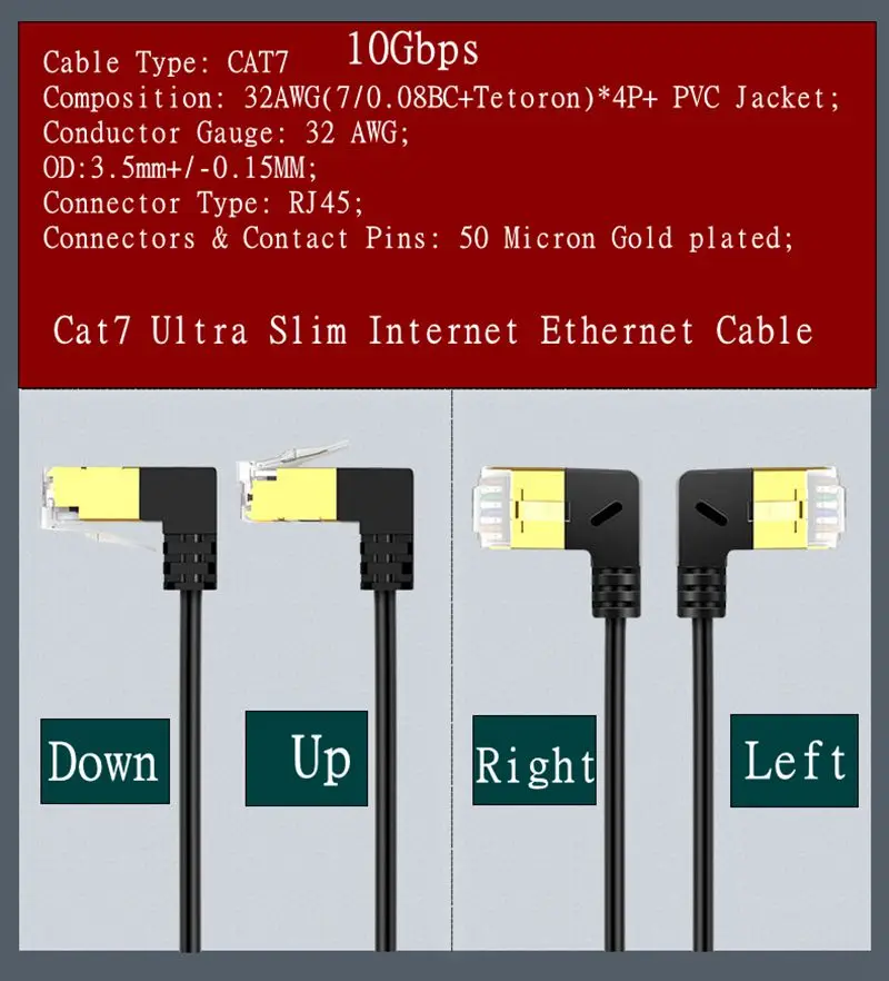 Comprar Cable Ethernet RJ45 Cat7 de 10Gbps, Cable Lan de red UTP RJ45 para Cat6, Cable de parche Compatible, ángulo recto de 90 grados, 0,5 m, 1m