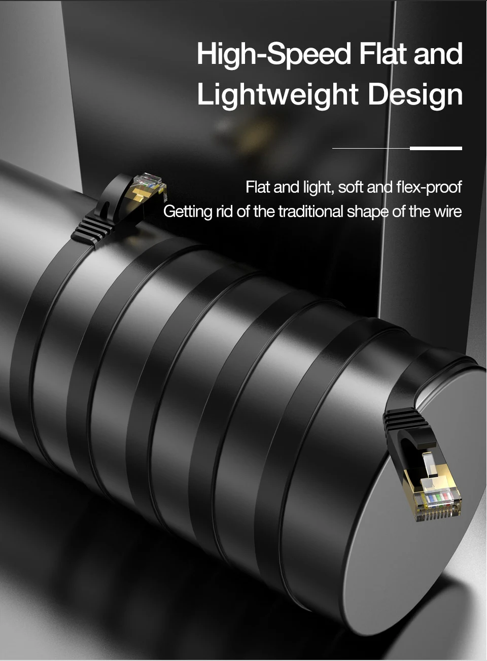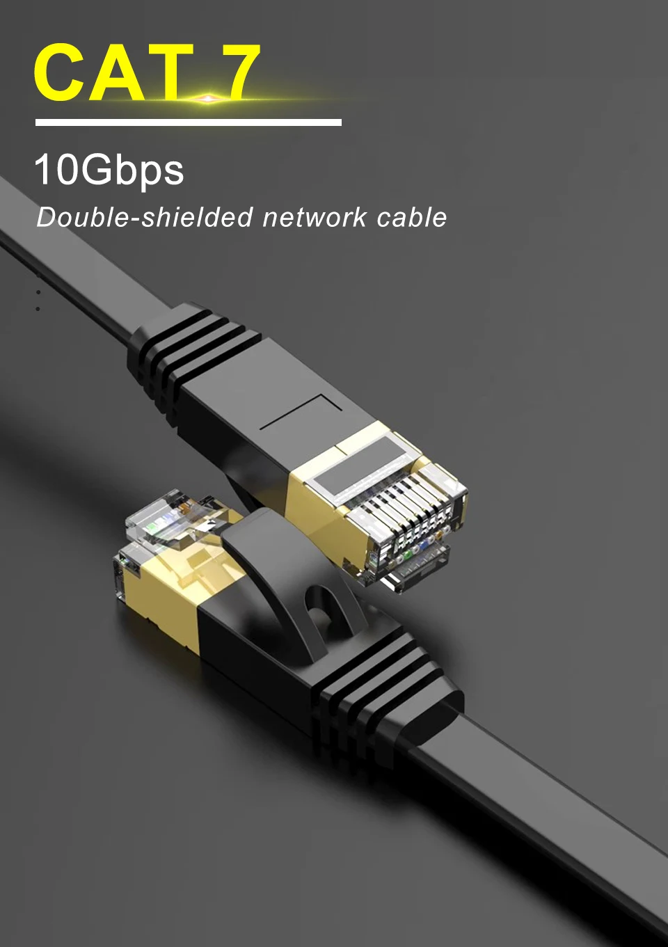 Comprar Cable Ethernet RJ45 Cat7 shield Lan, Cable de red plano UTP para enrutador de módem Compatible, 0,2 m, 0,3 m, 10/20/30 piezas