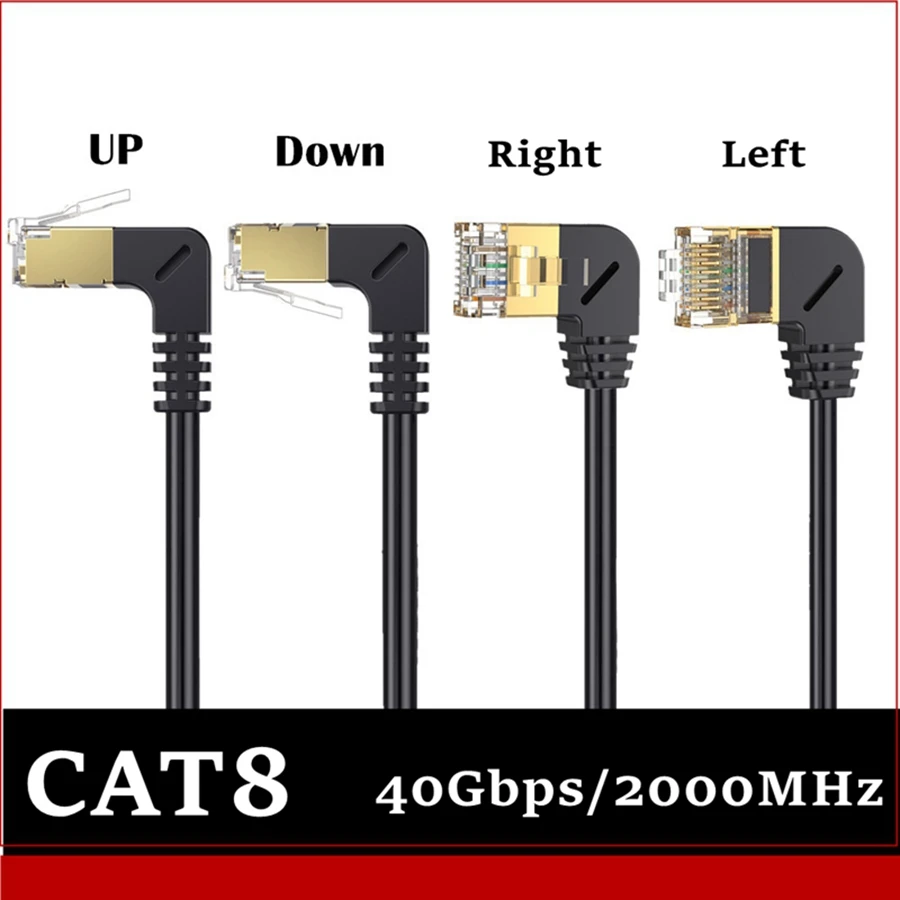 Comprar Cable Ethernet Ultra Cat8 SFTP 40Gbps 2000MHz Cat 8 RJ45 red Lan 90 grados ángulo recto hacia arriba abajo Internet RJ 45 Cable para portátiles