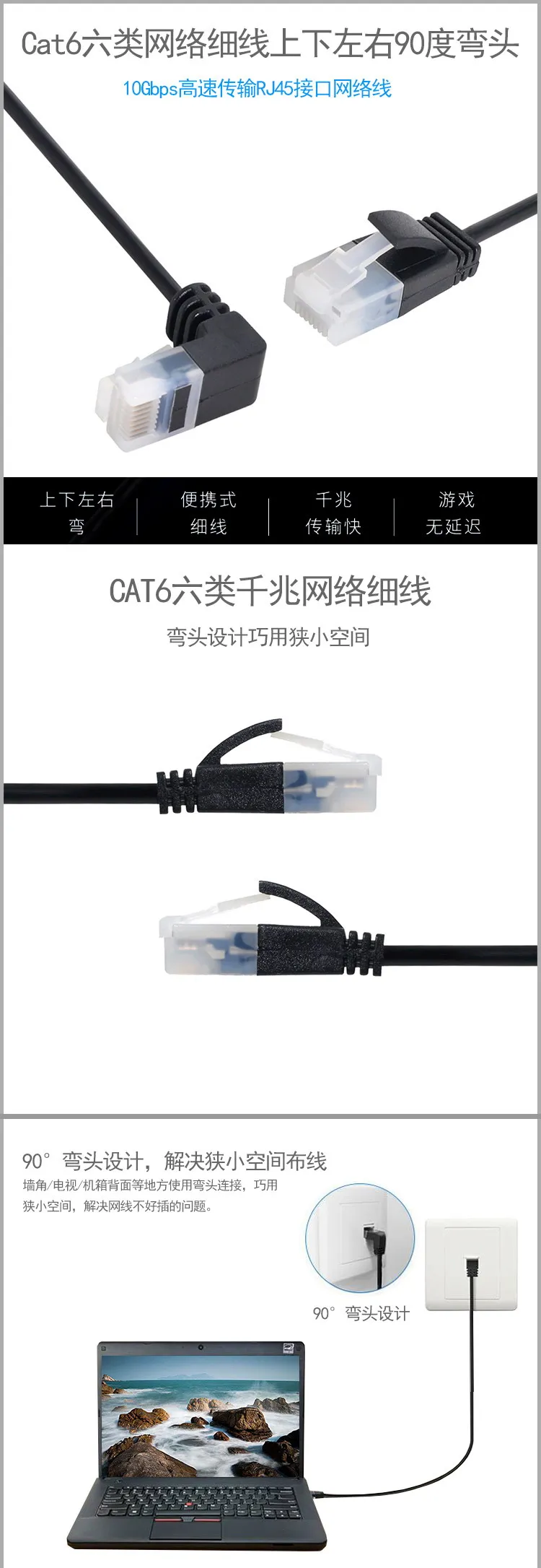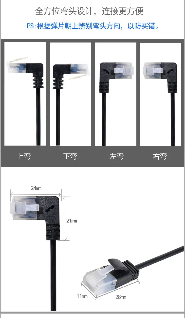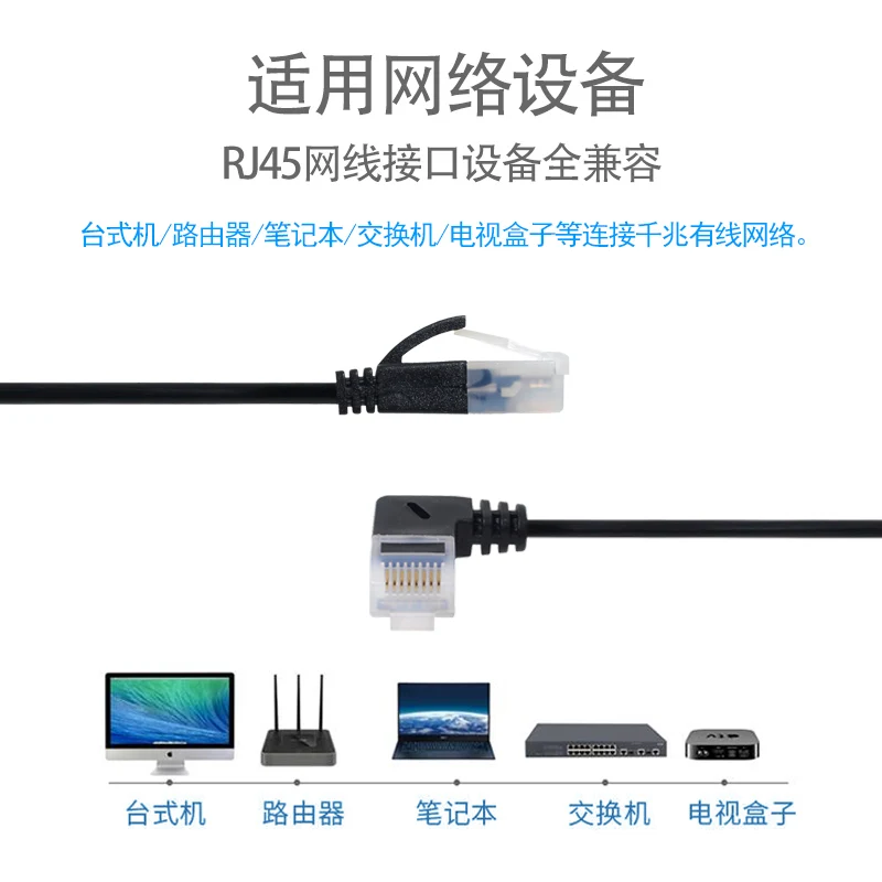 Comprar Cable Ethernet ultrafino Cat6 RJ45, Cable de conexión de red UTP, ángulo de 90 grados, 0,25 m-3m
