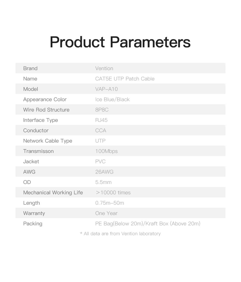 Cable Ethernet Vention Cat5e Gigabit de alta velocidad 100Mbps Cable de Internet RJ45 Cable LAN de red blindado para PC PS5 PS4 PS3 Xbox 1m