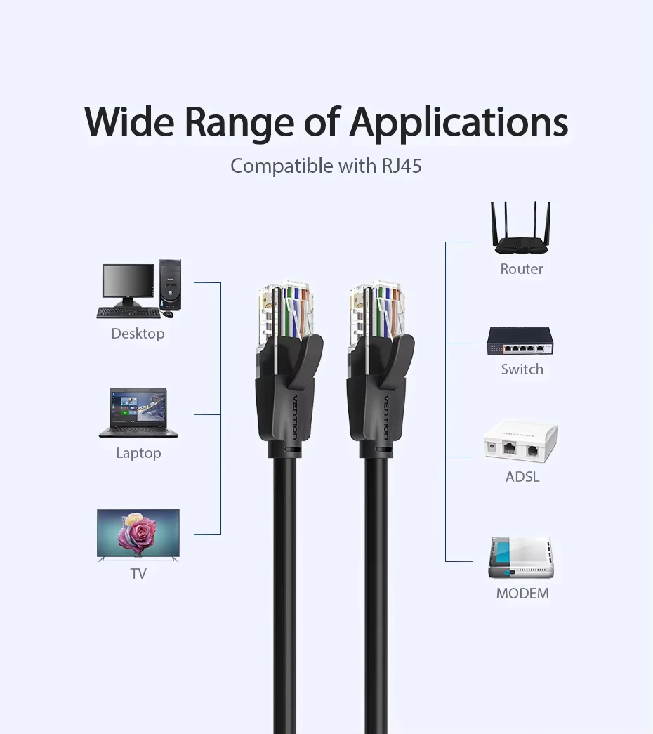 Comprar Cable Ethernet Vention CAT6 Lan Cable de conexión RJ45 de 2m Internet de red trenzado blindado para enrutador de computadora Gigabit Ethernet