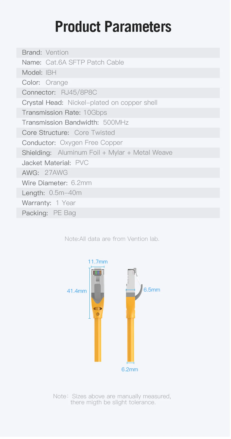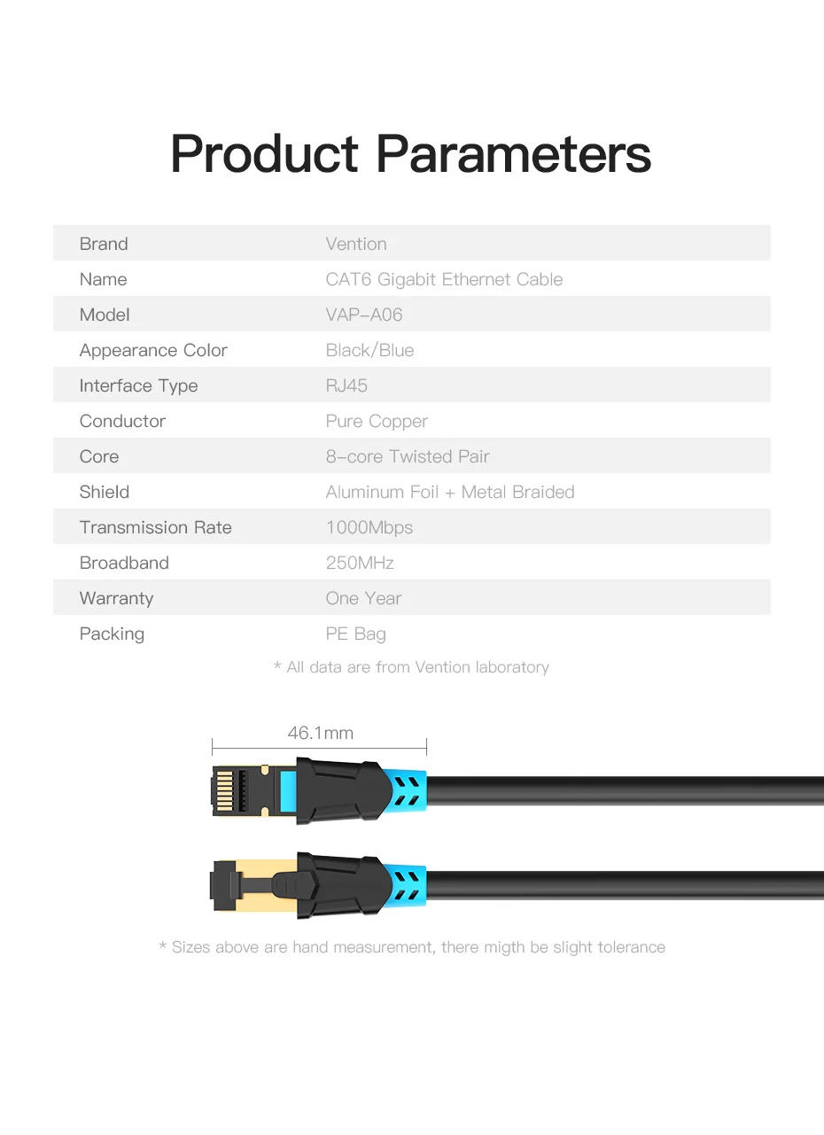 Comprar Cable Ethernet Vention RJ45 Cat 6A Cable Lan Cable de red UTP RJ 45 para Cable de conexión Compatible con Cat6 Cat6a para Cable enrutador de módem
