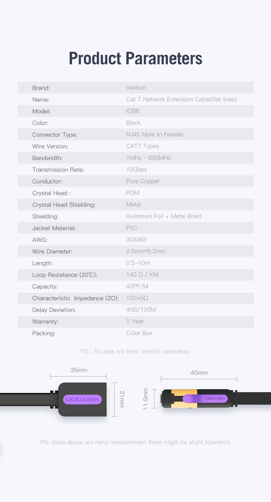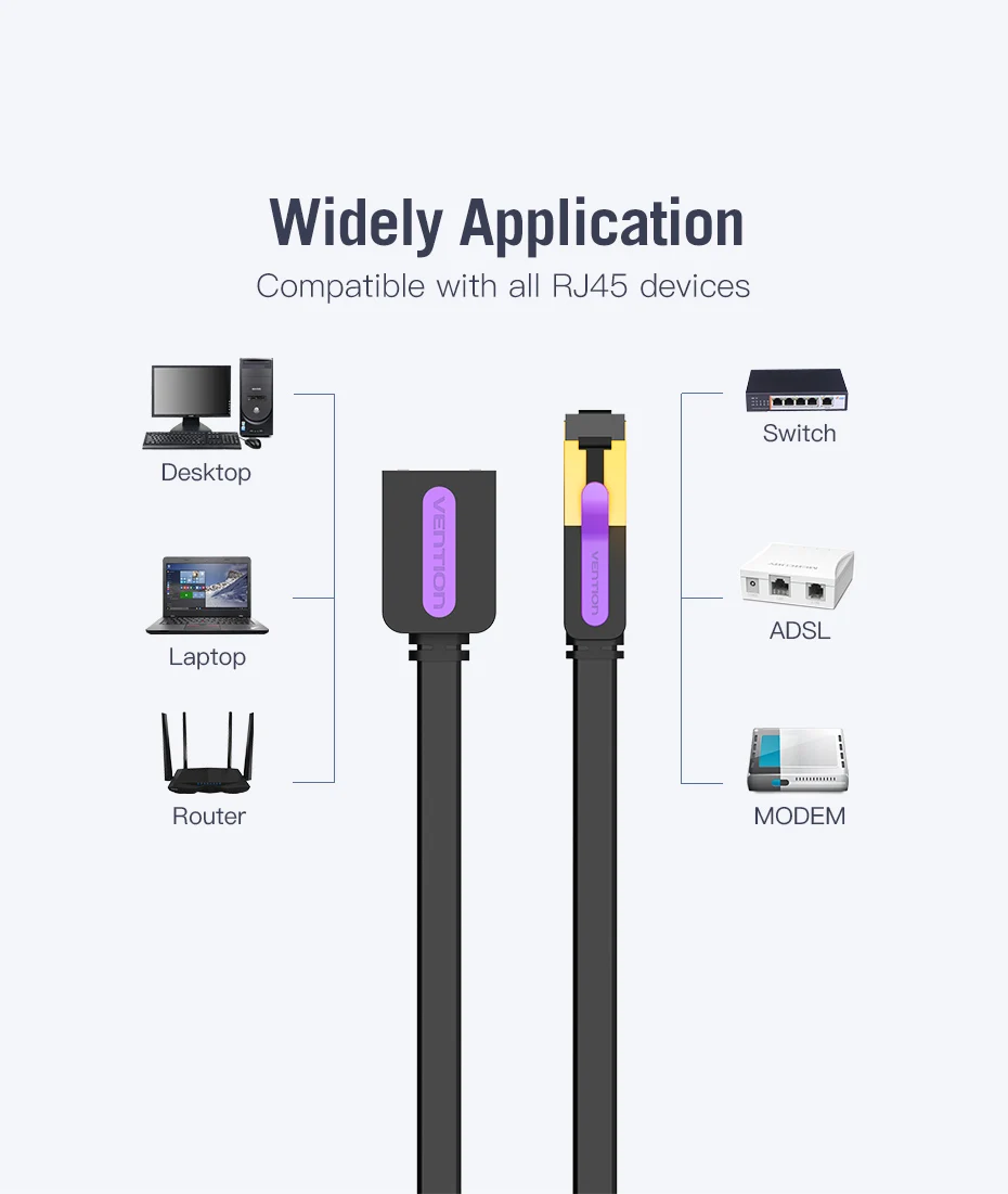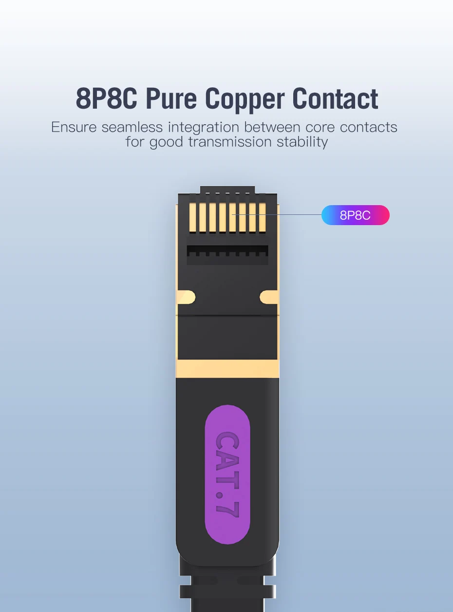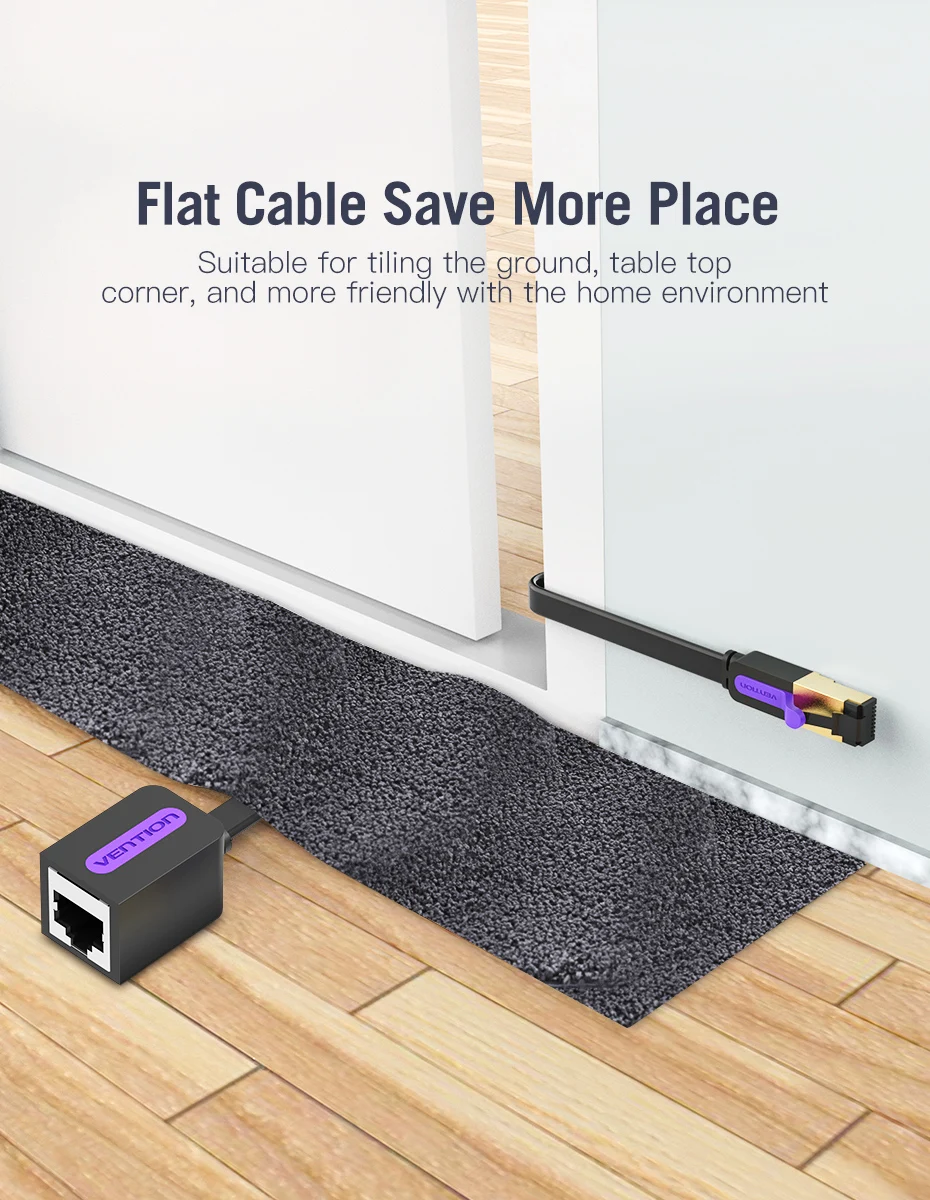 Excelente cable de extensión Ethernet Cat 7. El cable es plano y muy flexible.