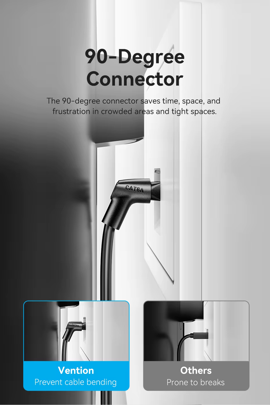 El conector de 90 grados ahorra tiempo, espacio y frustración en áreas concurridas y espacios reducidos.