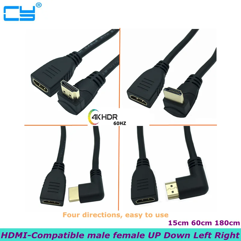 Comprar Cable de extensión de 180cm, compatible con HDMI, macho a hembra, 90 grados, 2,0 v, 4K x 2K, 60HZ, utilizado para proyector HD TV LCD Notebook PS3