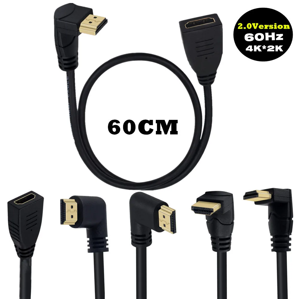 Comprar Cable de extensión de 180cm compatible con HDMI macho a hembra, 90 grados, 2,0 v, 4K x 2K, 60HZ, utilizado para HD TV LCD Notebook PS3 proyector
