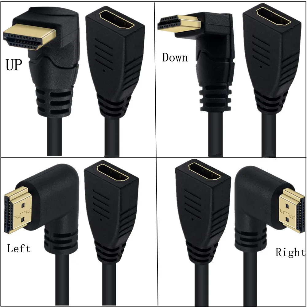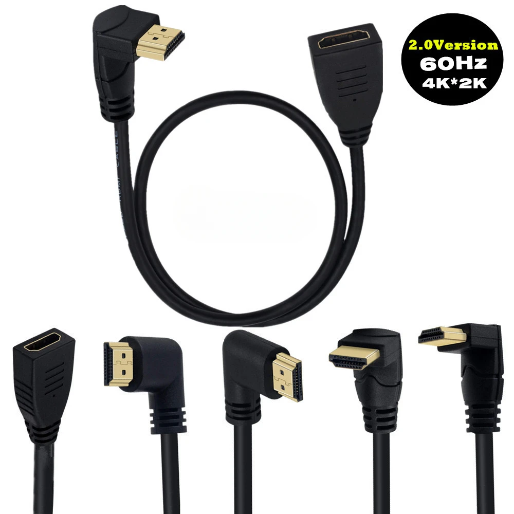 Comprar Cable de extensión de 180cm compatible con HDMI macho a hembra, 90 grados, 2,0 v, 4K x 2K, 60HZ, utilizado para HD TV LCD Notebook PS3 proyector