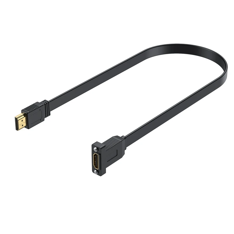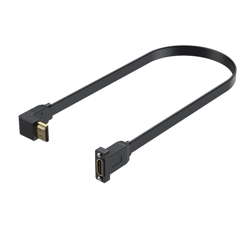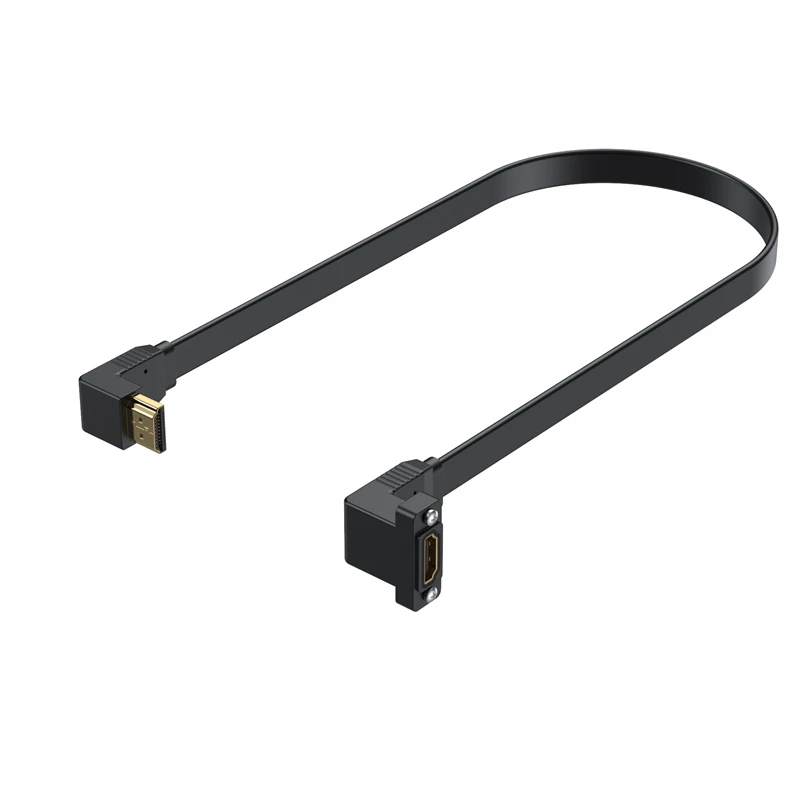 Doble curva plana ultrafina de alta velocidad HDMI 2,0 versión macho a hembra cable de extensión con orificio de tornillo Cable de conexión de panel fijo compatible con resolución 4K 60Hz, con una longitud de 50cm;