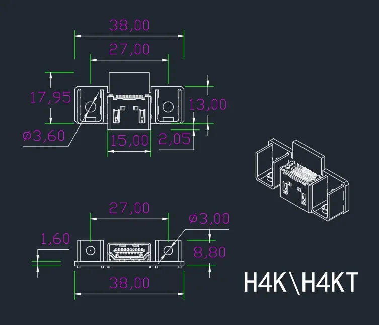 8, H4KT means with fixed buckle, using M3 screw, can be fixed by M3 screw.