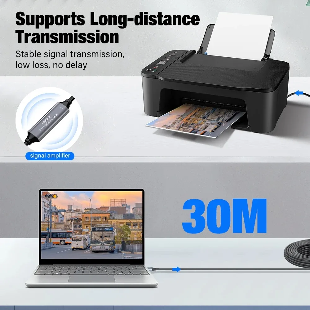 El cable de extensión USB 3.0 activo de alto rendimiento extiende la conexión entre la computadora o la tableta con Windows y los periféricos USB 3.0 y USB 2.0 (incluidos discos duros, concentradores USB, ratones, teclados, unidades flash, antenas Wifi, cámaras, impresoras, etc.)