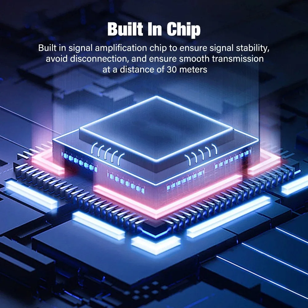 Conjunto de chips de mejora de señal USB.Cable de extensión largo para expansión de señal de dispositivo USB remoto.Dos amplificadores de señal pueden mejorar la atenuación remota de la señal USB y mejorar la velocidad de transferencia de datos.
