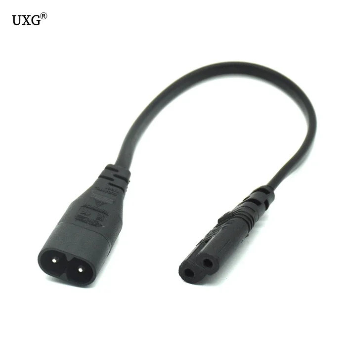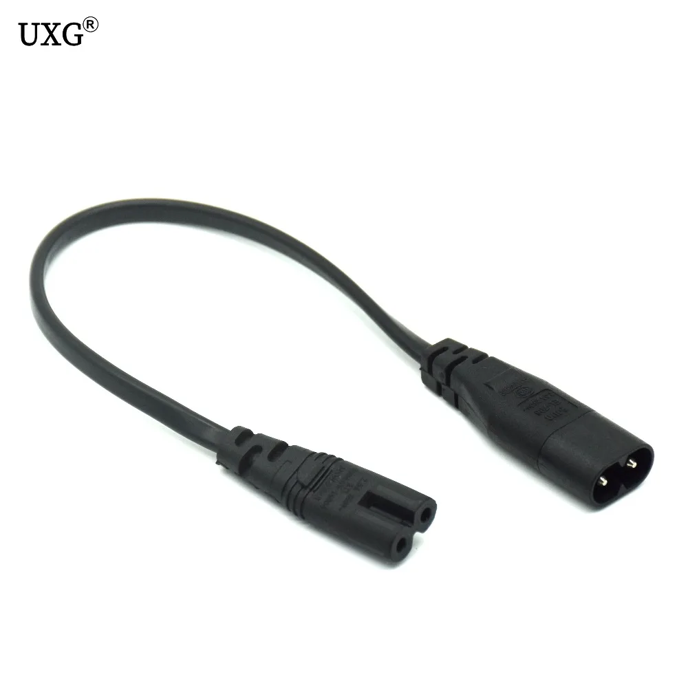 IEC 320 C7 2-pin female to IEC 320 C8 2-pin male.Cord in SPT-2 2x18AWG 2C Black color.Cord in length of approximately 1ft long.The adapter handles 2.5amps for 250 Volt range. Fits for power adapter of Laptop notebook ,camera etc.This IEC power extension cable can be used to extend the power cable to most computers and monitors as well as some printers. The cable is also suitable to connect a monitor to PC base unit.Specifications:Item type: IEC C7 Female To C8 Male Extension CableMeterial: PVCColor: Black(As Pictures Show)Cable total length: Approx.30cm/11.81inPlug: IEC 320 C8 male plugSocket: IEC 320 C7 female socketQuantity:1PC (other accessories demo in the picture are not included)Note: Due to the difference between different monitors, the picture may not reflect the actual color of the item. Thank you!!Compare the detail sizes with yours, please allow 1-4CM differs due to manual measurement, thanks!Package includes: