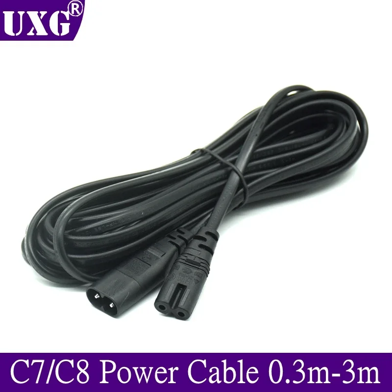 Comprar Cable de extensión de adaptador de corriente IEC 320, 2 pines, C7 hembra a C8 macho, figura 8, 30CM, 1,5 m, 6 pies, 3M, 5M