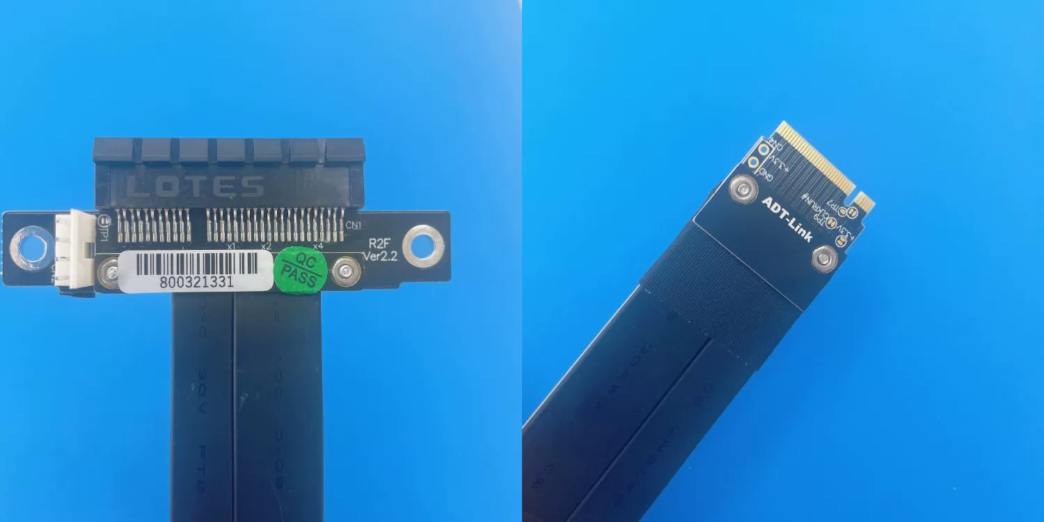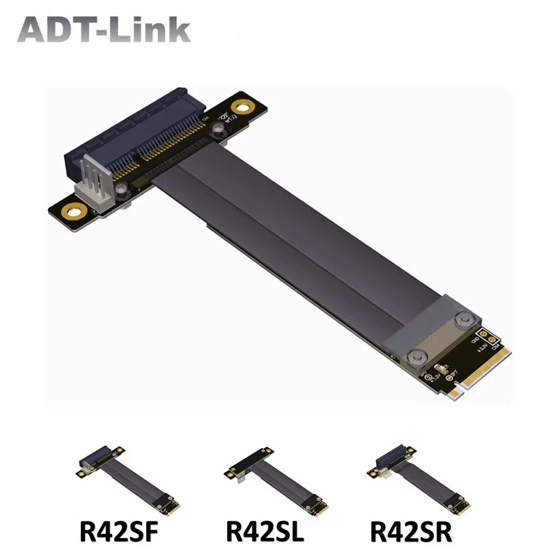 N/PDescripciónAncho de bandaR42SFTecla M.2-M NVMe a PCIe X4, conector que gira cables de extensión vertical de férula de 180 gradosPCIe 3,0x4 (32G/BPS)R42SRTecla M.2-M NVMe A PCIe X4, el conector gira cables de extensión inversa invertidos de 270 gradosPCIe 3,0x4 (32G/BPS)R42SLTecla M.2-M NVMeA PCIe X4, el conector gira 90 grados Cable alargadorPCIe 3,0x4 (32G/BPS)P.Foto:
