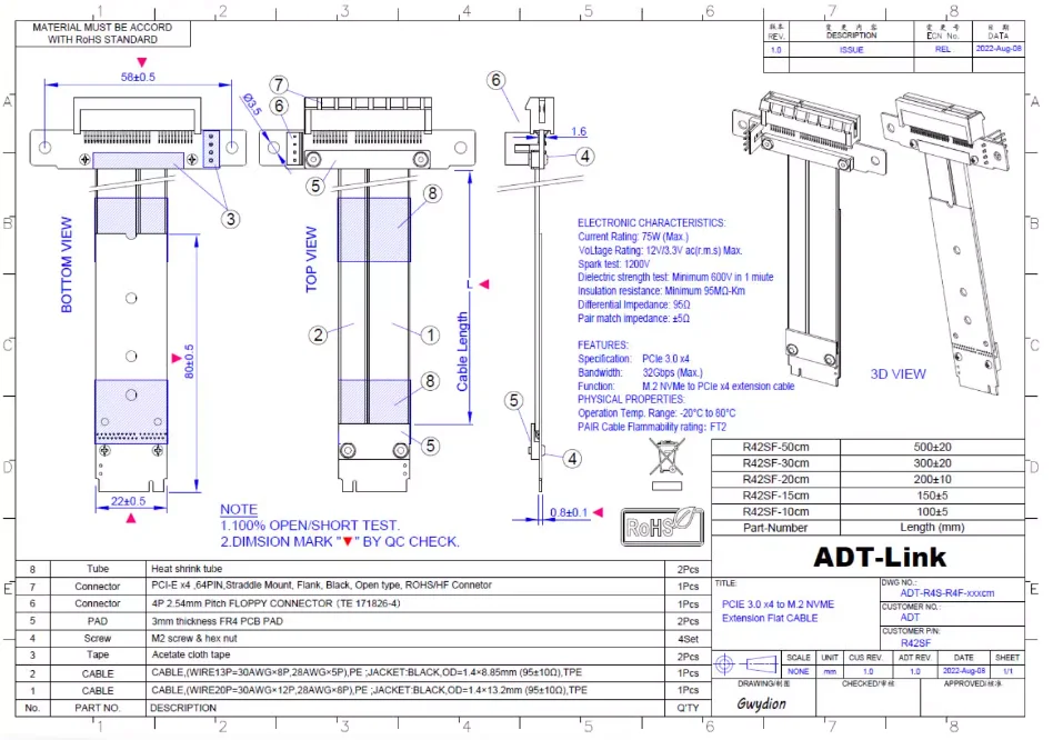 1. Ventajas del cable, uso de cable importado patentado alemán, uso de conector de alta calidad importado de Taiwán, soporte de alta frecuencia PCIe 3,0 transferencia estable.