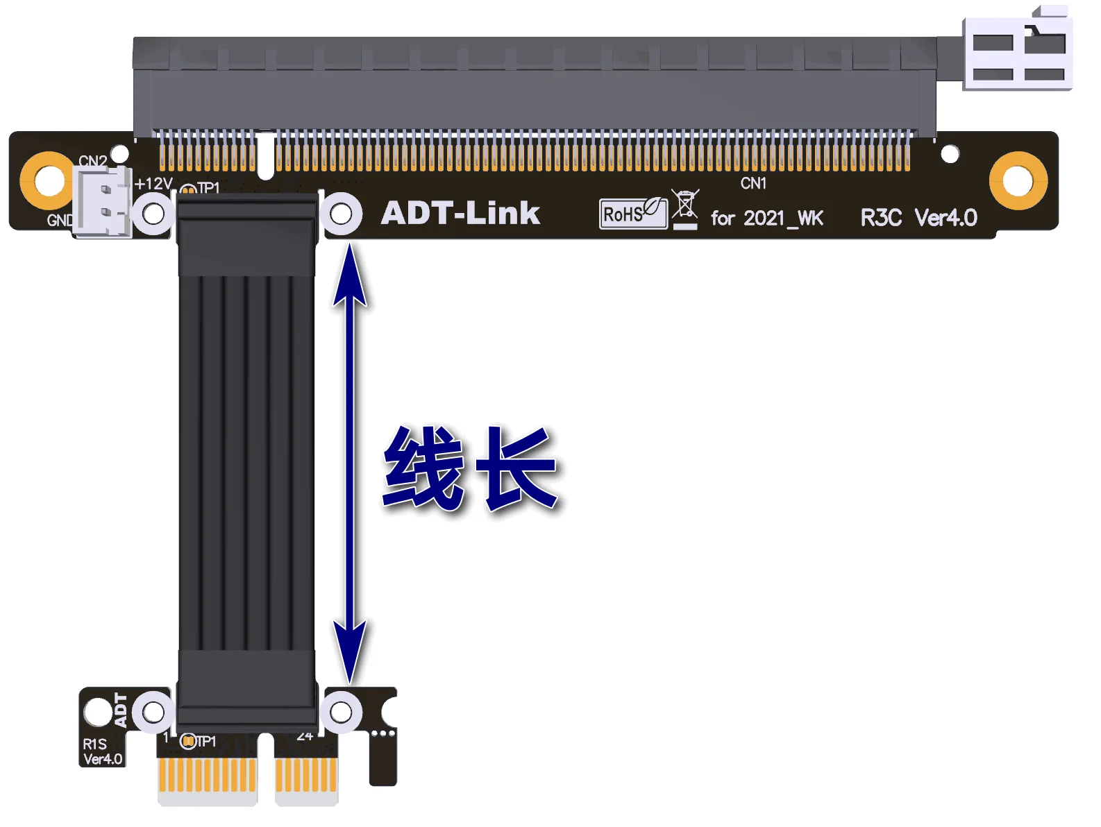 | R13SC-WK 4,0 | PCIe 4,0 x1 转 x16 显卡延长线 母座 180 度平直款 附电源线 |