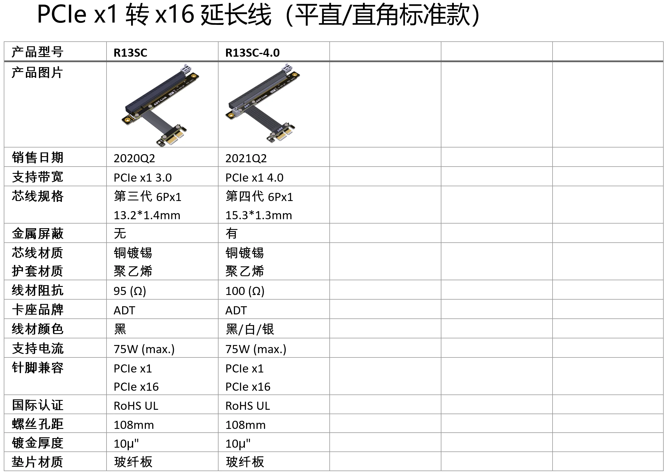 | R13SC | PCIe 3,0 x1 转 x16 延长线 标准版 母座带扣 180 度夹板平直款 |