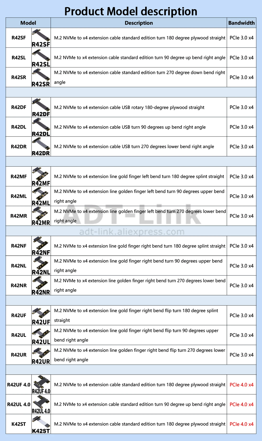 Comprar Cable de extensión ADT R42UF PCI Express X4 4,0/3,0 PCI-E 4x a M.2 NVMe M Key 2280 Riser Card Gen3.0 Extender Line 15cm - 100cm