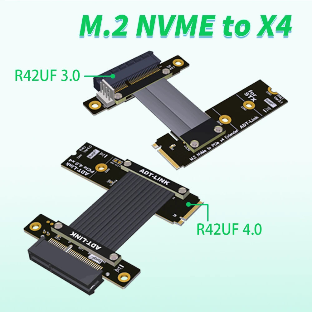 Comprar Cable de extensión ADT R42UF PCI Express X4 4,0/3,0 PCI-E 4x a M.2 NVMe M Key 2280 Riser Card Gen3.0 Extender Line 15cm - 100cm