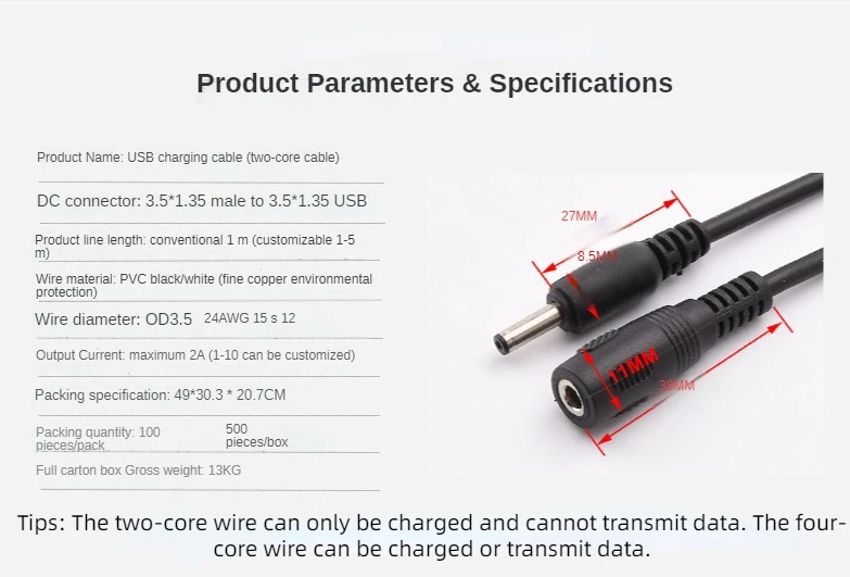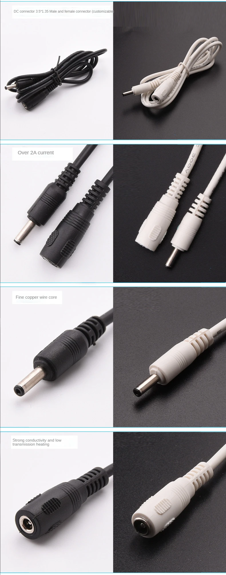 Cable de extensión de CC 1M 3,5*1,35mm 5V 2A Jack hembra a macho Cable de alimentación para tira LED Cable adaptador de corriente Cámara CCTV