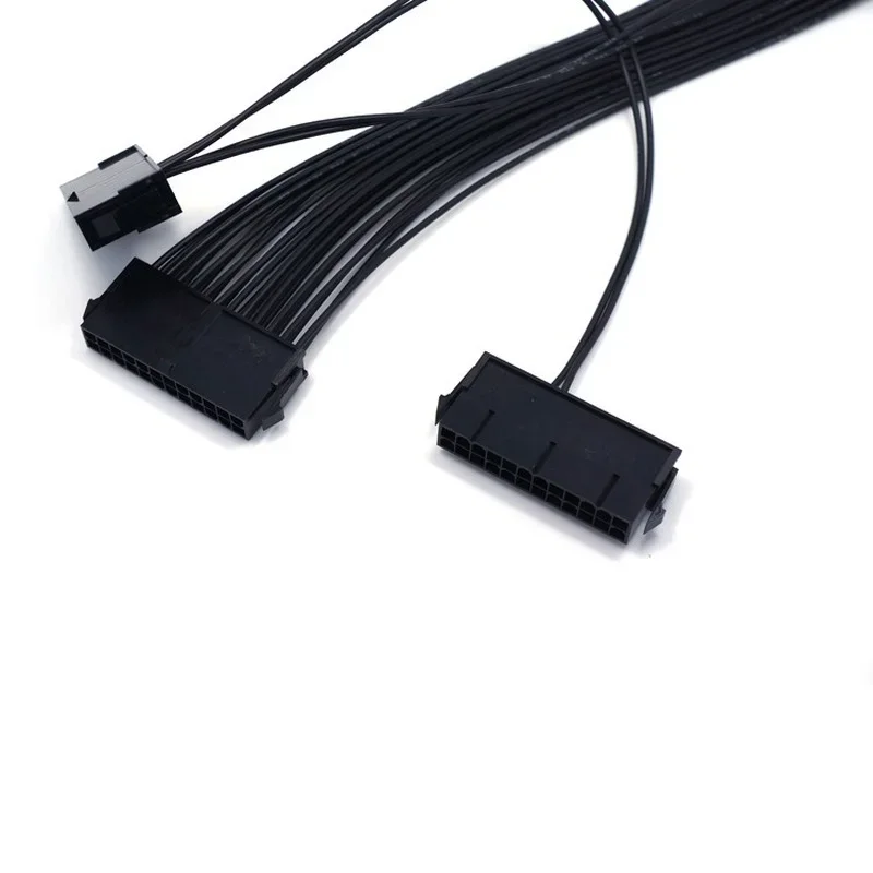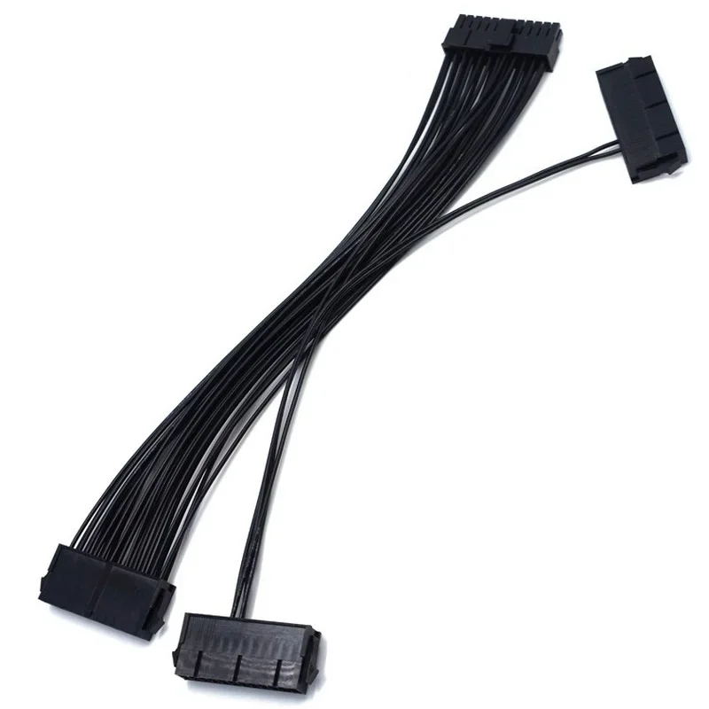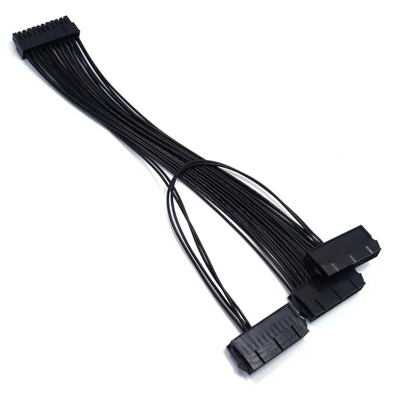 Cable de extensión de alimentación Dual PSU de 24 Pines, Conector de Cable de sincronización de tres fuentes de alimentación, 12,6 pulgadas/32cm 1. Haga que las tres fuentes de alimentación se enciendan y apaguen al mismo tiempo, aumentando así la potencia de la fuente de alimentación