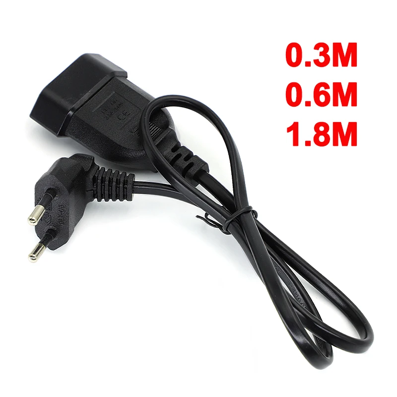1 Uds. Cable de extensión de alimentación de enchufe macho europeo de 90 grados a hembra para ordenador PC PDU 0,3 m/0,6 m/1,8 m Cable en ángulo doblado de 2 puntas UE