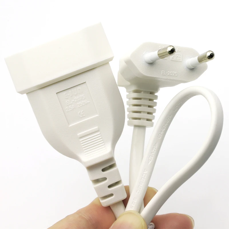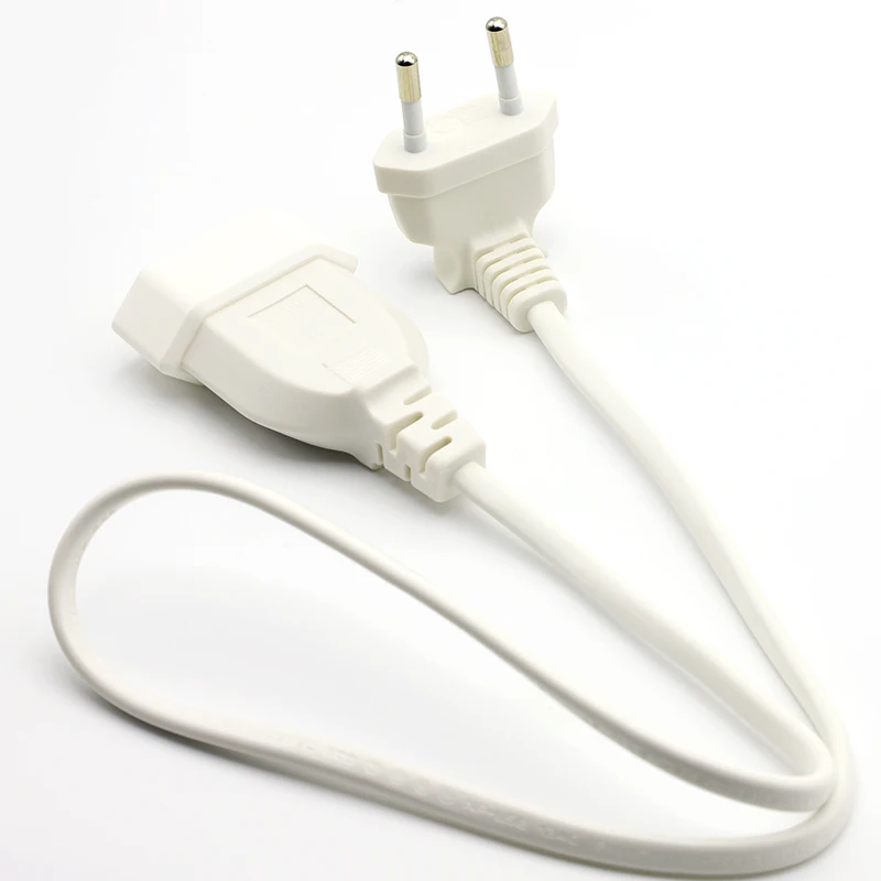 Cable de extensión de alimentación europeo UE de 2 puntas macho a hembra, adaptador de Cable de alimentación en ángulo de 90 grados para UPS PDU
