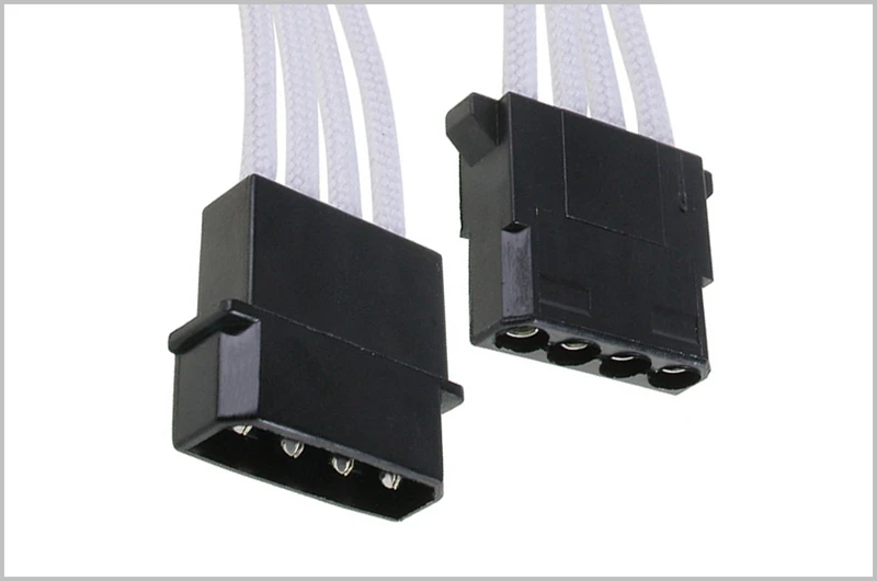 Cable de extensión de alimentación macho a hembra IDE Molex de 4 pines con manga blanca de 30cm.