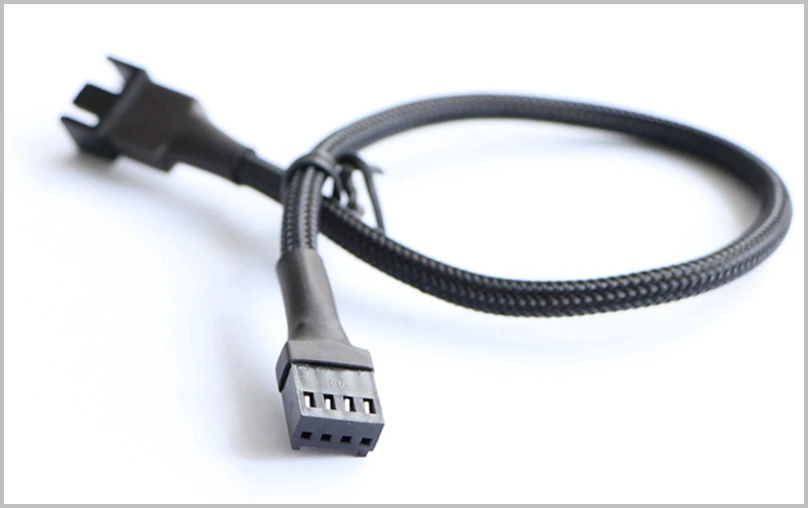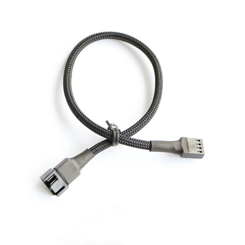 Cable de extensión de alimentación macho a hembra de ventilador de PC de 4 pines con manga negra de 2.