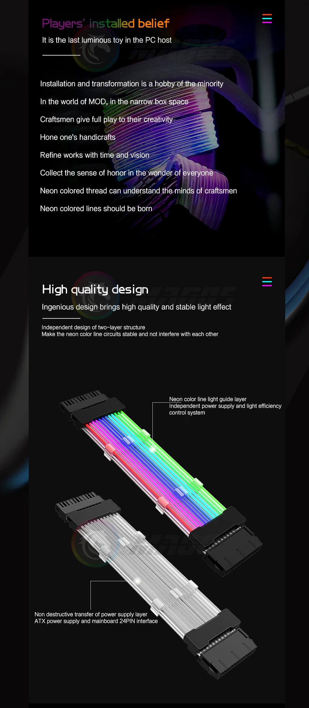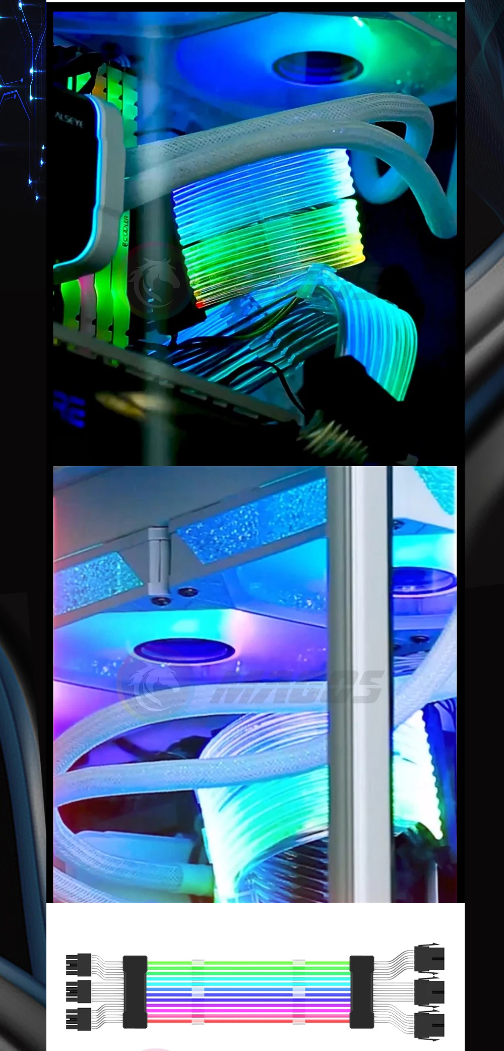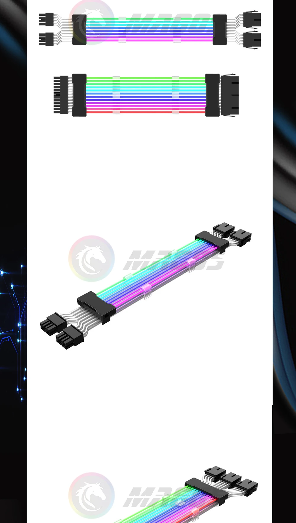 Cable de extensión de alimentación PSU, placa base de 24 Pines, 5V, ARGB, Cable de alimentación para funda de PC, compatible con ASUS Aura Sync, tira de luz Flexible