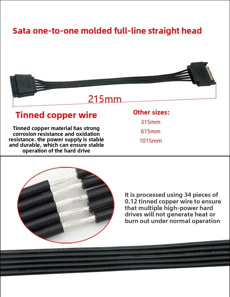 Comprar Cable de extensión de alimentación SATA de 5 cables Cable Sata macho a hembra, extensión de cable de alimentación Sata 0,2 m 0,3 m 0,6 m 1 m