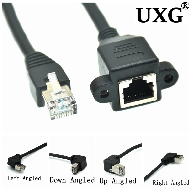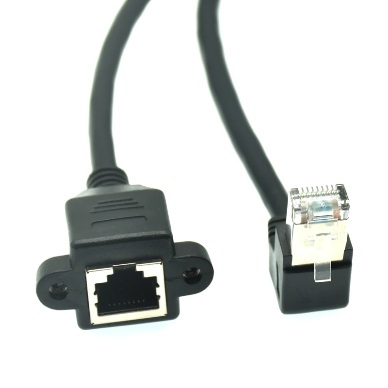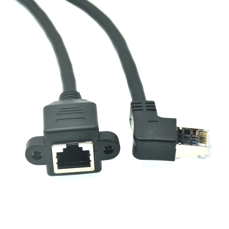 Comprar Cable de extensión de ángulo recto de 90 grados, Cable RJ45 de 8 pines, macho a hembra, montaje en Panel, red Ethernet LAN, 0,3 m, 0,6 m