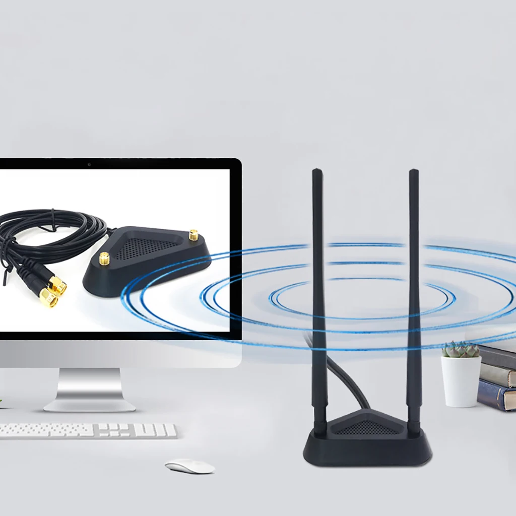 Comprar Cable de extensión de antena de doble banda 2,4G 5,8G con Base magnética 8DB SMA antena para enrutador WIFI tarjeta de red inalámbrica