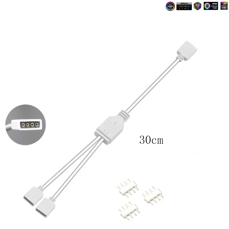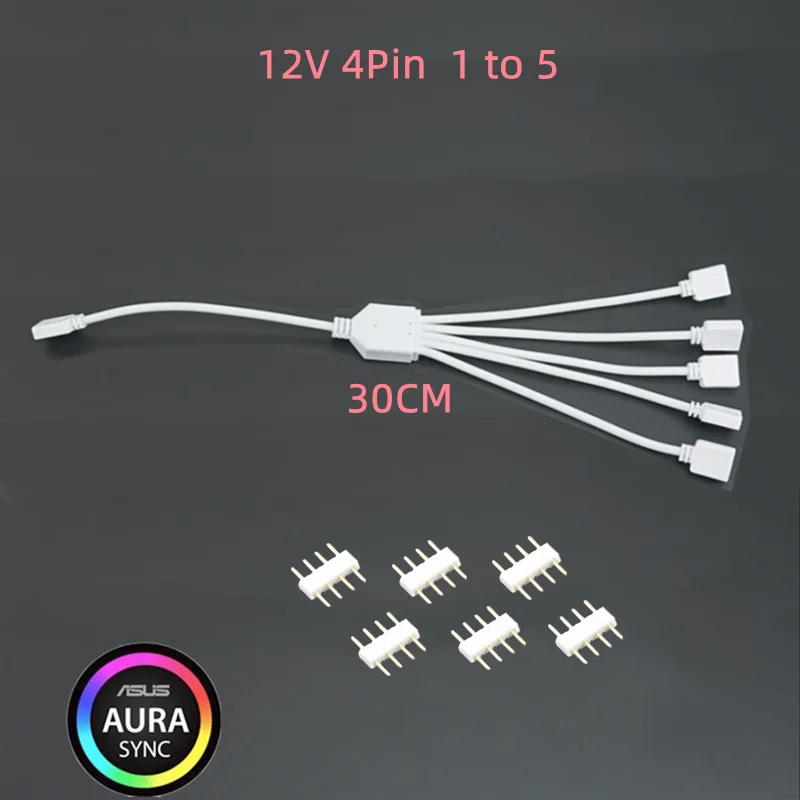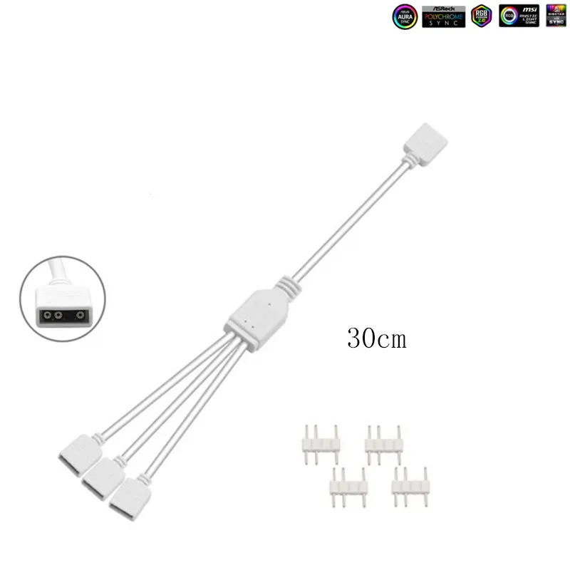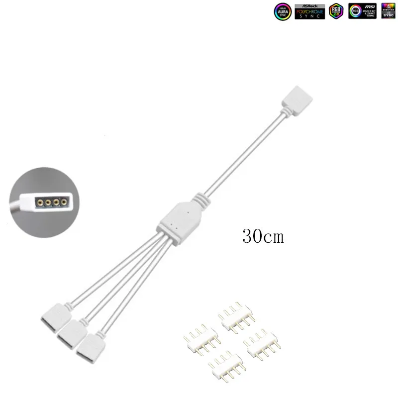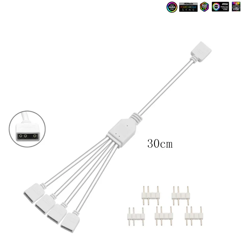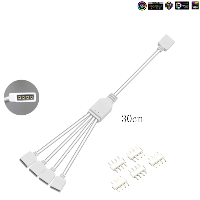 Comprar Cable de extensión ARGB blanco, 5V, 3 pines, 12V, 4 pines, divisor de 1 a 1, 2, 3, 4, 5 para ventilador, placa base AURA RGB, sincronización LED para MSI ASUS GIGABYTE