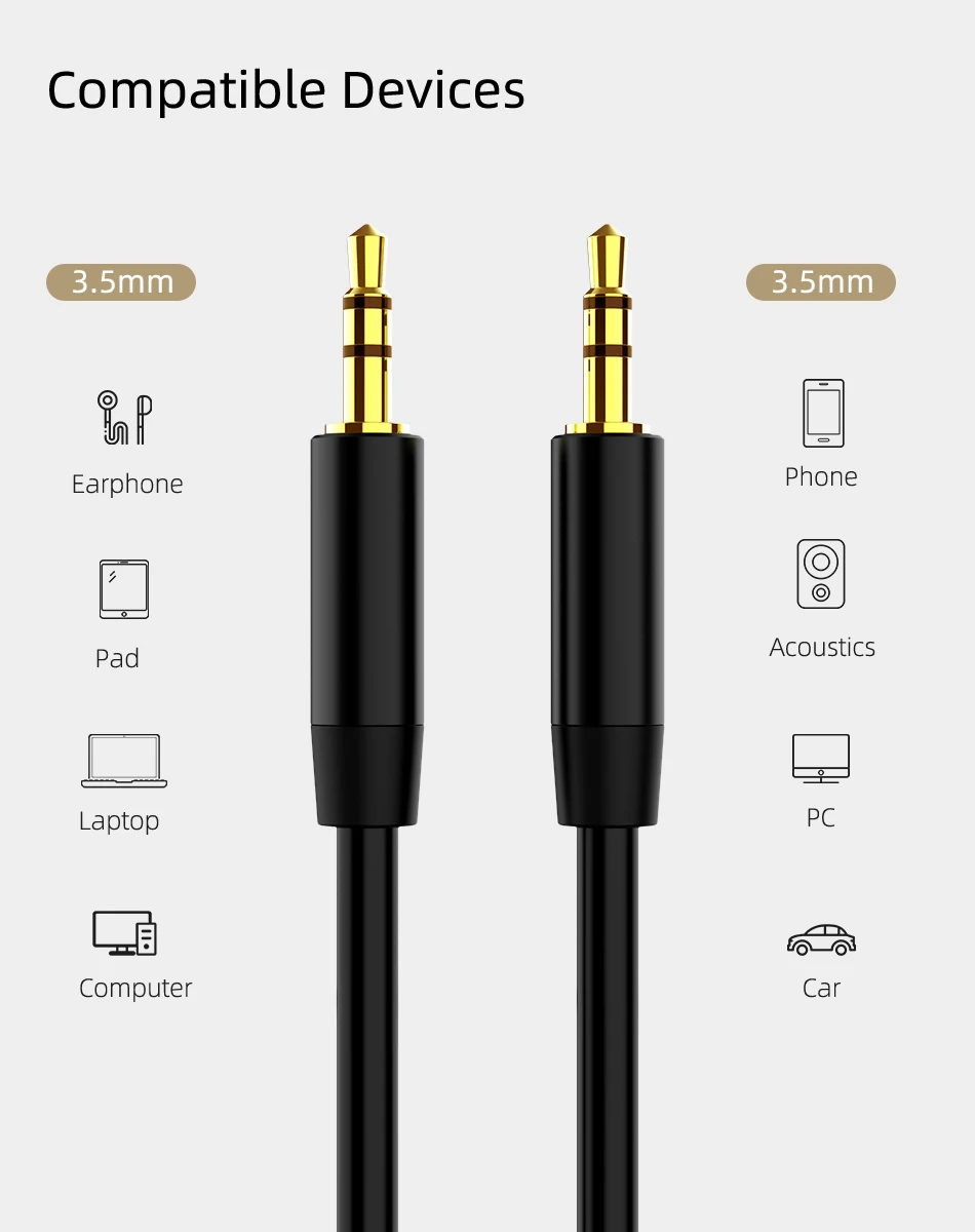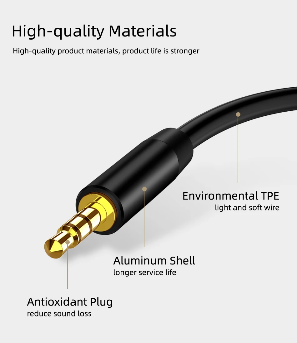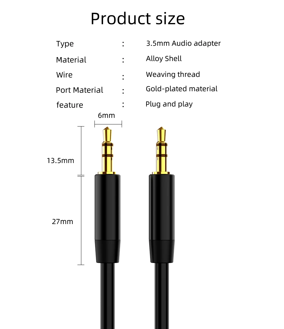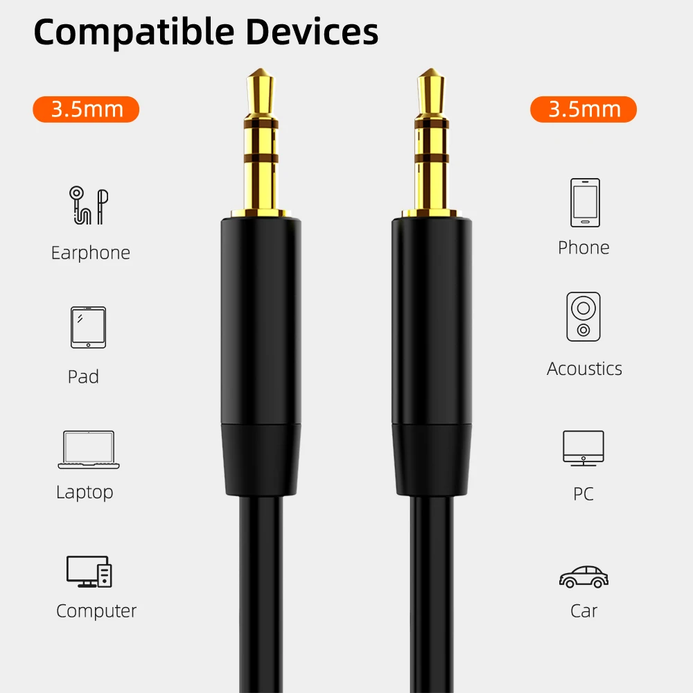 Cable de Audio auxiliar Jack de 3,5mm, cable de extensión de audio auxiliar macho a macho para coche, teléfono móvil, ordenador, reproductores multimedia, altavoz Mp3/Mp4