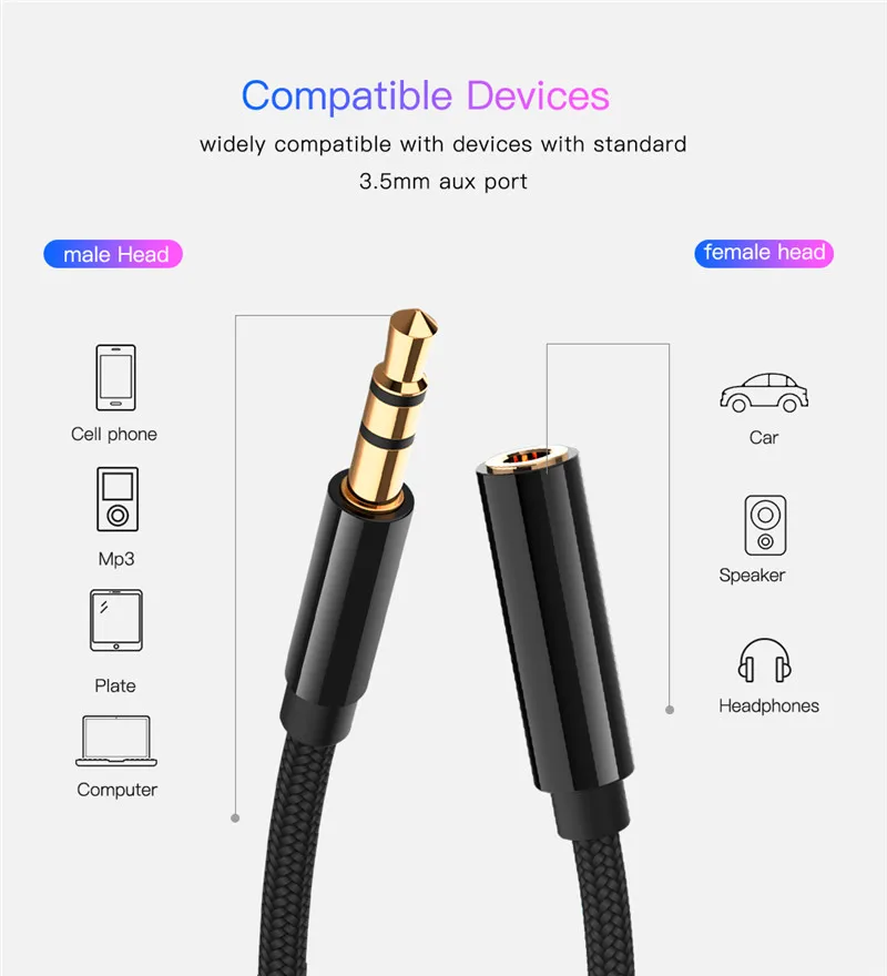 Comprar Cable de extensión de Audio con conector auxiliar de 3,5mm, extensor de auriculares macho a hembra, para altavoz y auriculares de coche