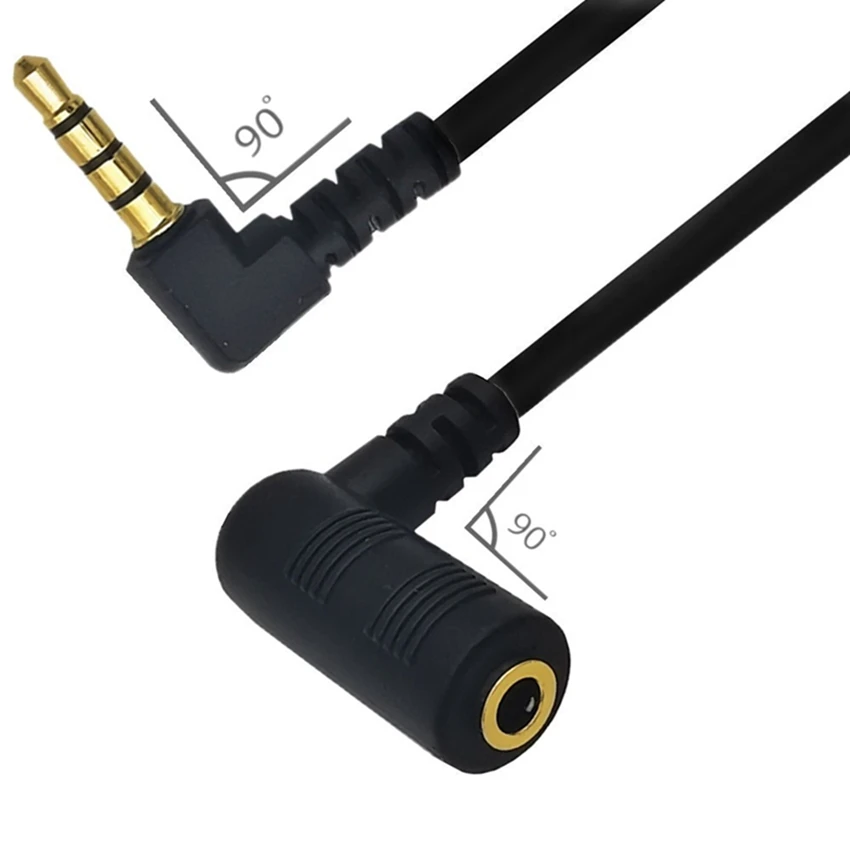 Comprar Cable de extensión de Audio estéreo para auriculares, convertidor de adaptador de 3,5mm macho a 90 grados, conector M/F hembra en ángulo recto, 3 y 4 polos