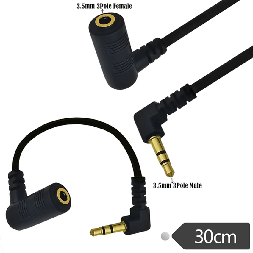 Cable de extensión de auriculares, convertidor de adaptador de enchufe M/F macho a ángulo recto hembra de 3,5mm estéreo de audio de 30cm CC.