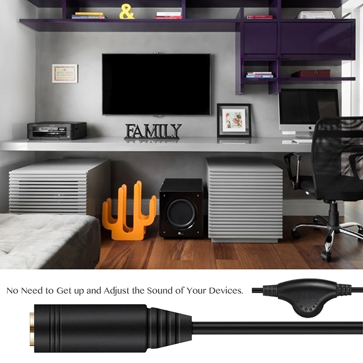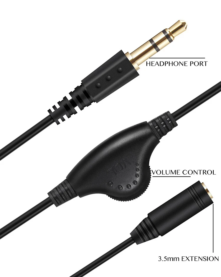 Comprar Cable de extensión de Audio Jack de 3,5mm M/F, Cable auxiliar de Audio estéreo de 3,5mm con Control de volumen para auriculares