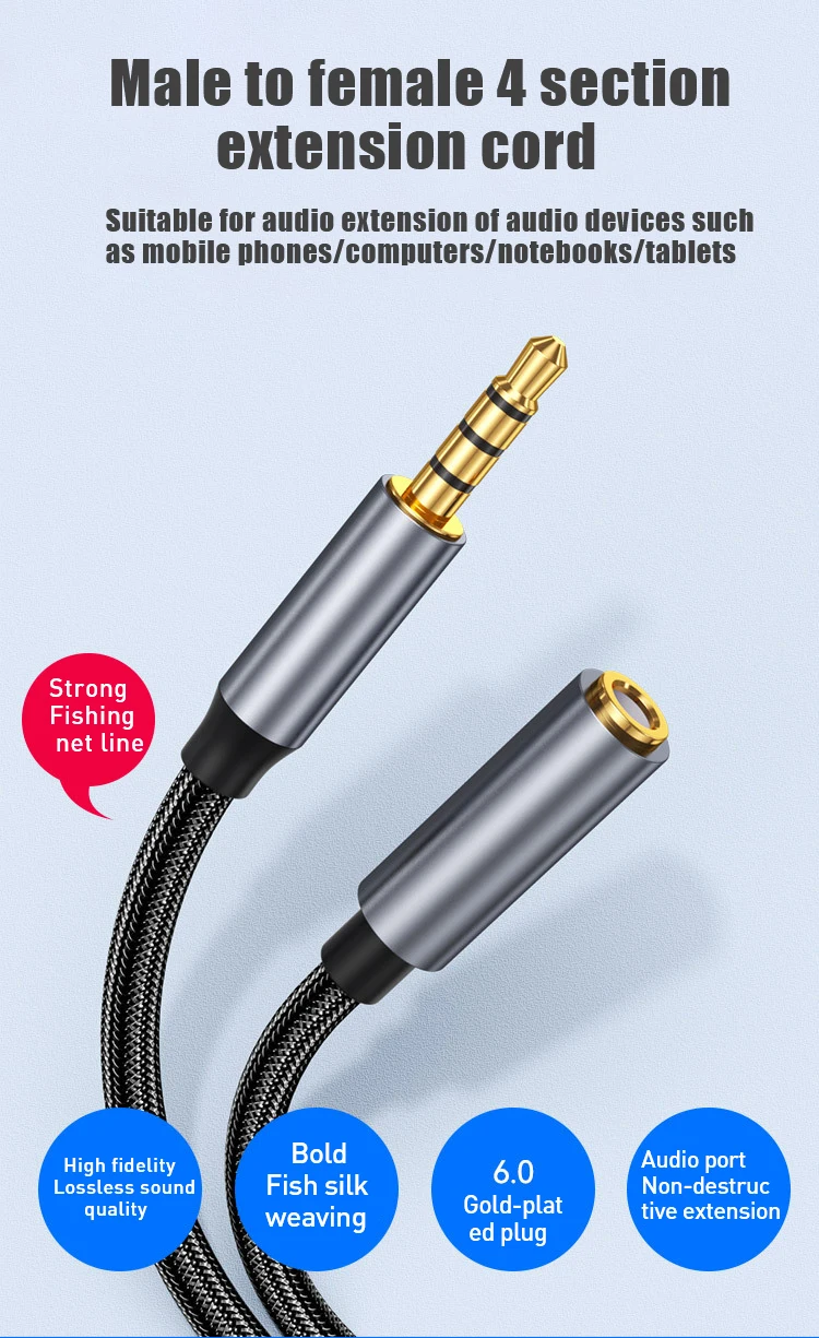 Comprar Cable de extensión de Audio macho a hembra, conector auxiliar de 3,5mm con micrófono estéreo 3,5, Compatible con PC de 1/2/3/5M