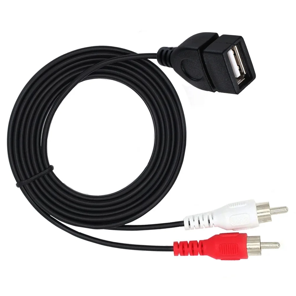 Componentes 1,5 m USB A hembra a 2 RCA macho enchufe Audio Video Cable de extensión Cable Digital Cable de línea de datos Accesorios