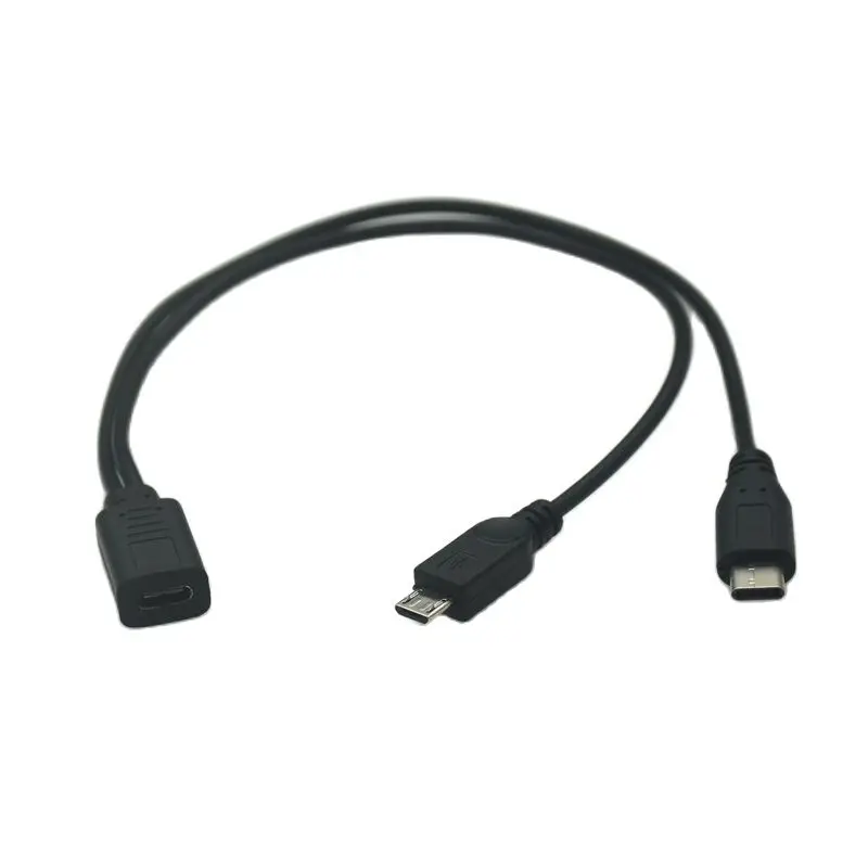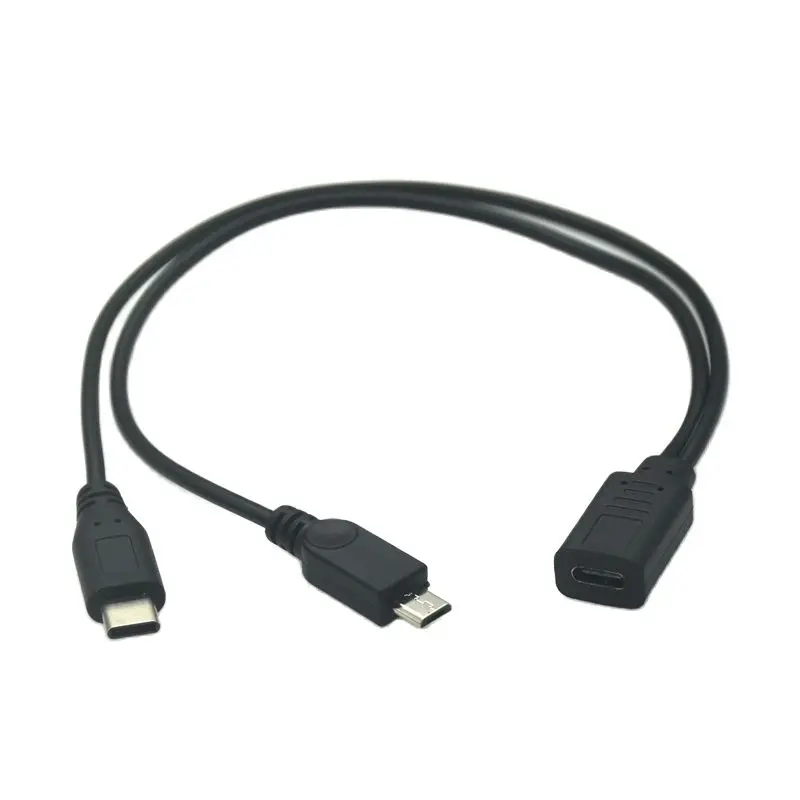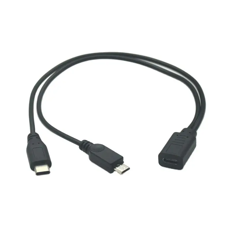 Mirco USB Hembra a Miró USB Macho y Tipo-C Macho Cable Divisor Extensión