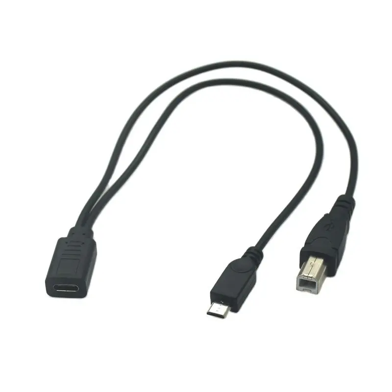 Comprar Cable de extensión de carga USB 3,1 tipo C 1 a 2 tipo C hembra Y Micro USB 5P Y tipo B para impresora hembra a 2 macho Y divisor, 30CM
