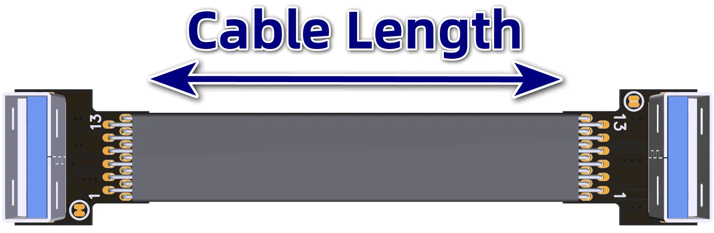 La Longitud del cable se refiere a la parte del cable visible. No incluye el PCB y el conector. Para la longitud del cable, consulte la flecha azul de 5cm en la figura a continuación.