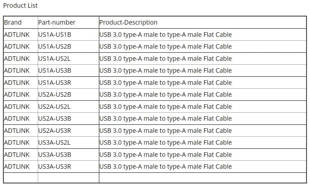 Nombre del producto: cable plano USB 3,0 tipo A macho a tipo A macho