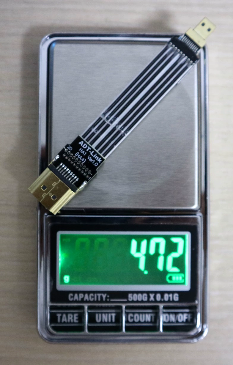 El peso del cable delgado de 5cm es de 0,96G, y el peso que incluye el conector y la placa PCB es de 4,72G